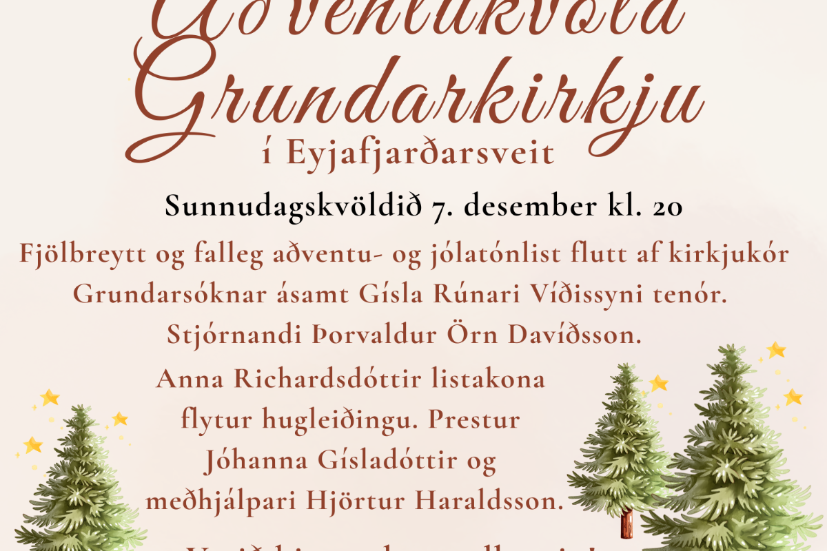 Aðventukvöld Grundarkirkju í Eyjafjarðarsveit sunnudagskvöldið 7. desember kl. 20.00.