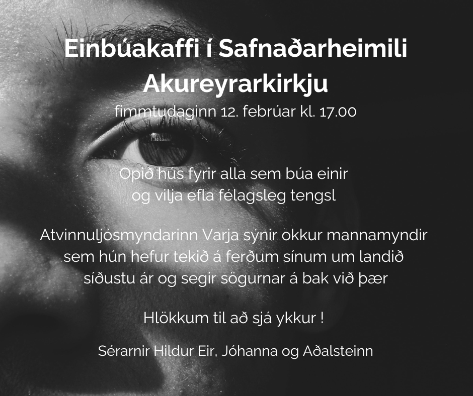Einbúakaffi í Safnaðarheimilinu fimmtudaginn 12. febrúar kl. 17.00.