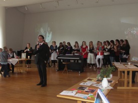Stúlknakór Akureyrarkirkju syngur undir stjórn Eyþórs Inga Jónssonar. Börnin fá kirkjubókina afhenta, það verður mikill
